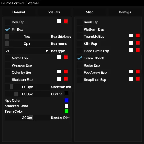 • Blume для Fortnite — современный продукт с отличным ESP и точным AIM для уверенного преимущества